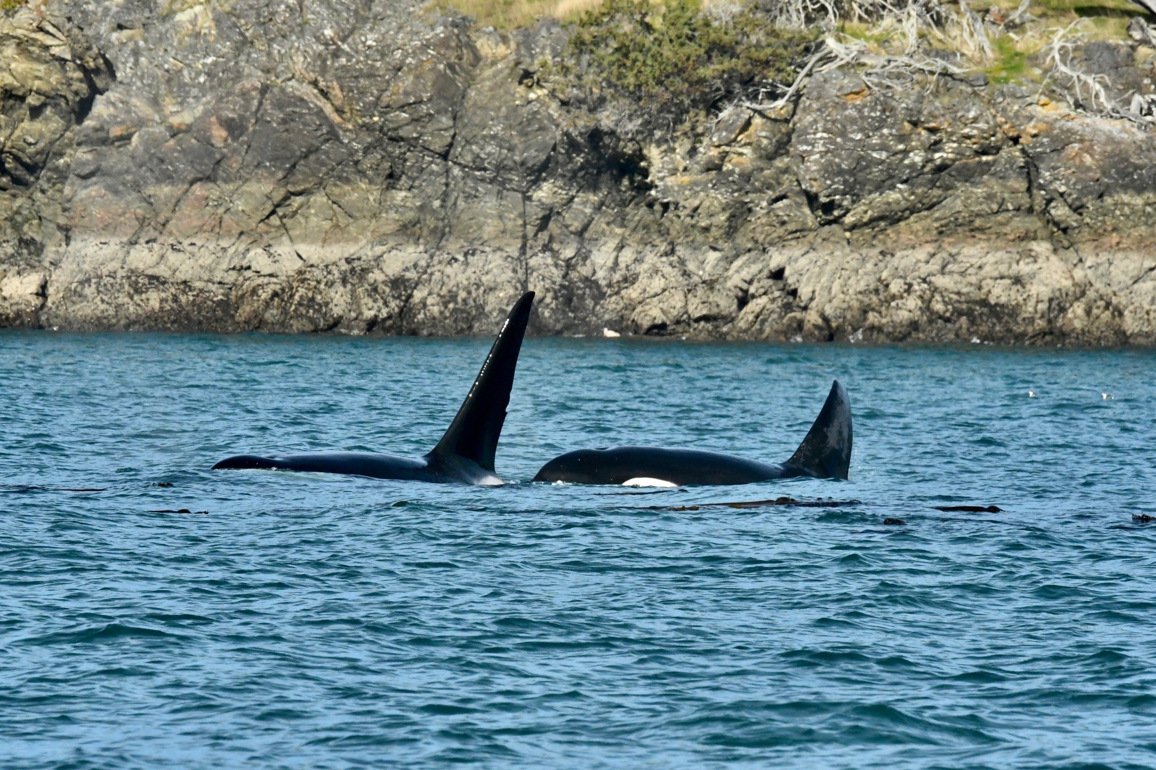 We were able to catch up with 2 Bigg’s Killer whales, T049C and T049A2, two males who have been hanging out together for the last couple of weeks. These buddies made their way into the mouth of Friday Harbor and promptly found a set of crab pot buoys to play with! We watched as the two whales playfully, repeatedly drug the buoys underwater!