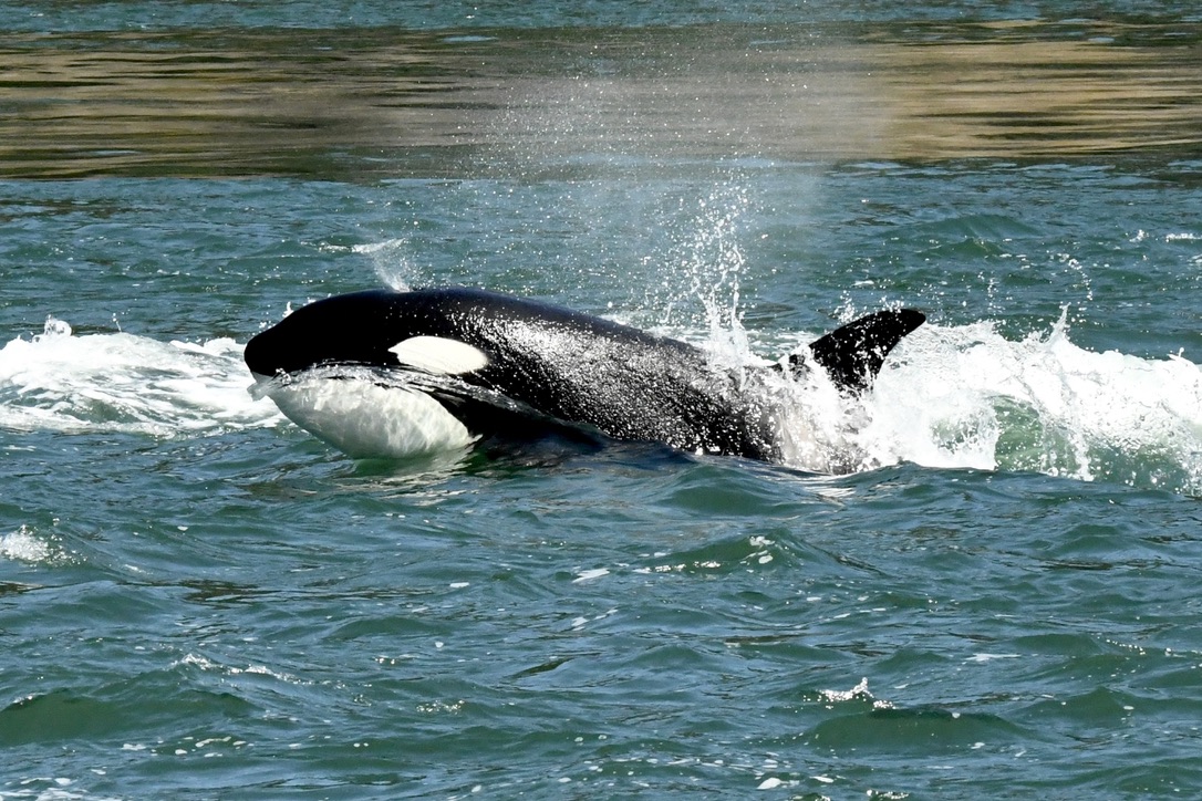 This week’s round of trips was highlighted by an encounter on Saturday morning’s trip when we got to watch the T124A’s swim through Deception Pass! It was incredible to watch the raw power of these whales on display, as they powered through pass against 6 knots of current! They “porpoised” through the pass, meaning propelling their whole bodies out of the water to get as much speed as they could.