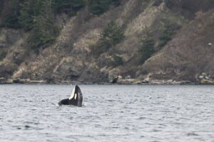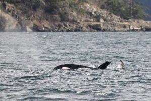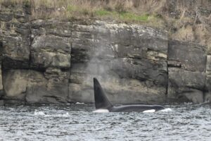 And our last trip of the season was a jaw-dropper–14 Bigg’s killer whales on this tour (we did not encounter them all at the same time)! We had the T49A family group with the oldest male offspring, T49A1 “Noah,” actually traveling with his family (he often does not) (6), and then found the T34s and T37s (group of 8) in the ferry lanes not far from our marina on our way back to the docks. Somehow, we managed to dodge the rain and fit time in with both of these groups, getting guests the experience with a fully grown adult male, and then three younger whales spread throughout these 3 different family groups. It was truly a wonderful way to close out the 2025 season!