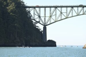We also encountered several minke whales where larger bait balls (large tight packs of forage fish just beneath the surface of the water) were forming–mostly off the south end of San Juan Island and Lopez Island. Sometimes These whales seemed to really be focused on eating, sending lots of gulls into the air when they would come up and lunge through the bait fish. Before we know it, they will few and far between until all have left the Salish Sea for warming waters to breed and/or give birth, as well.