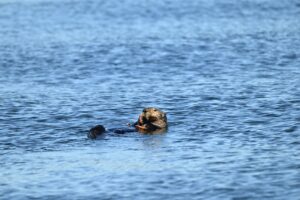 Another little notable was the presence of a sea otter that was spotted on several tours when we were in the vicinity of Turn Island near the eastern side of San Juan Island. Sea otters are a rare sight in the inland Salish Sea, as the bulk of the population is found. along the outer coast, but from time to time we get these visitors taking up a kelp bed for a little while, feeding and resting while they spend time here. One one occasion, this otter was wrapped in the kelp and resting; on several others they were seen eating the gooey insides of urchins and mussels! We hope they stick around for a little while.