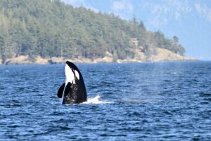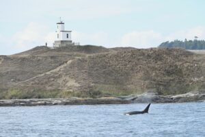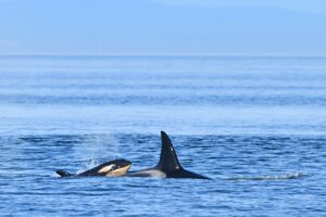 Our weekly notable: some of Blue Kingdom’s crew were able to get out on an impromptu, “after work hours” trip on the evening of September 23rd when a large T Party (gathering of multiple family groups of Bigg’s killer whales) was making their way from the Strait of Georgia down toward the northern part of Rosario Strait–basically right in our proverbial backyard. This large grouping is 100% the reason that the central Salish Sea saw such an uptick in individual Bigg’s killer whales this week. The small group that was aboard our semi-covered vessel, Wake, also got an encounter with this large group towards the end of their tour! The group consisted of 33 individuals and it was awe-inspiring to see so many dorsal fins in one place–especially some of the legendary males, like T63 Chainsaw! See our Instagram/social media post for the play-by-play of our evening, crew encounter!